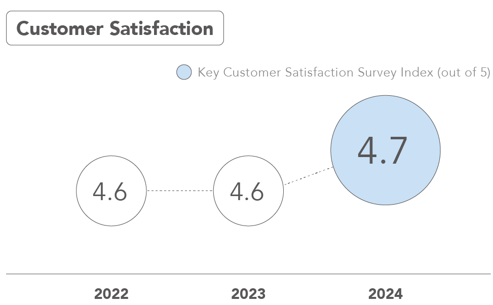has remained above 4.5 (out of 5). In 2024, all customer scorecards met required benchmarks. TSC will continue enhancing service quality with customer satisfaction as a core focus.