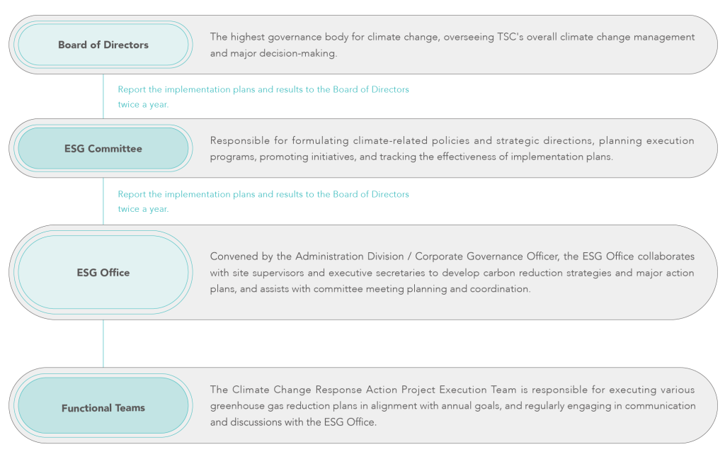 To strengthen sustainability oversight, TSC established its first ESG Committee in 2022. In 2024, the Board of Directors formally elevated the ESG Committee to a board-level functional committee, enhancing its supervisory role and reinforcing stakeholder engagement and the Company’s sustainability commitment.
